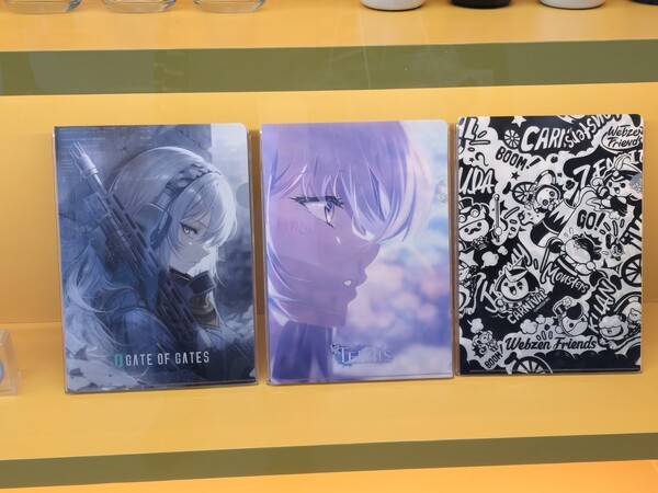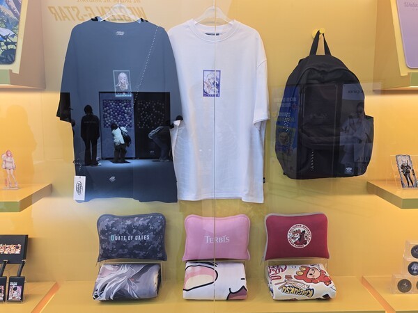 웹젠은 서브컬처 신작 '테르비스'와 '게이드 오브 게이츠'의 굿즈들로 가득 채웠다. 아직 출시되지 않았음에도 다양한 종류를 준비한 것이 눈길을 끈다.