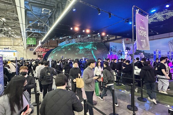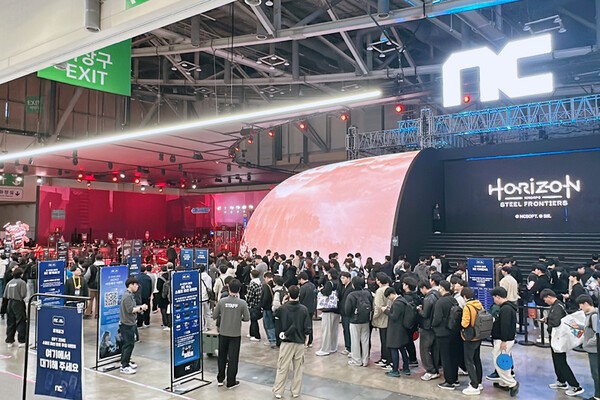 '아이온2' 체험존은 '지스타 2025' 3일차 시작부터 긴 대기열이 형성됐다. 이와 더불어 '신더시티' 체험존 역시 많은 유저들이 몰리면서 엔씨소프트의 부스는 주말의 첫 이슈들을 견인했다. 깜짝 신작인 '호라이즌 스틸 프론티어스'의 시네마틱 등을 돔 스크린으로 경험하기 위한 유저들의 발길도 끊임 없이 이어졌다.