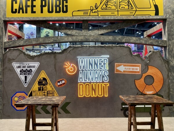 'PUBG: 배틀그라운드' 존은 럭키 드로우, 비밀의 방 슈팅 존 등 다양한 체험형 공간으로 꾸며져 있다. 펍지 카페는 피로를 풀어줄 달콤한 도너츠와 아이스 커피를 준비해, 지친 관람객들이 잠시 에너지를 충전할 수 있도록 준비했다.
