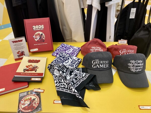 웹젠 부스에서는 열쇠고리, 가방, 모자, 셔츠, 장패드, 쿠션, 텀블러, 찻잔 셋트 등 퀄리티 높은 다양한 굿즈를 만날 수 있다.