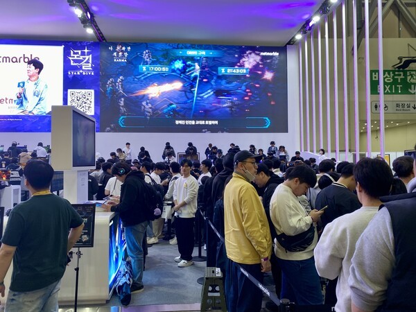 넷마블은 벡스코 제1전시장에서 게임 체험 위주의 부스를 마련하고, 게임마다 관람객들이 안전하게 신작 4종을 체험할 수 있도록 준비했다.