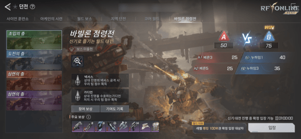 PvP 시간에는 콘텐츠 내 각종 오브젝트 공격 및 파괴, 몬스터 처치 등을 통해 전쟁 스코어를 더 많이 쌓은 팀이 승리하는 방식이다. 특정 스코어에 도달할 때마다 버프를 획득하고 콘텐츠 종료 시점에는 단계에 따른 최종 보상을 획득하실 수 있다. PvP 모드 종료시 보상에 따라 신규 전설 MAU 및 런처 설계도를 얻을 수 있다.