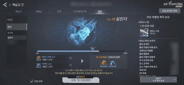 신규 챕터와 던전 외에도 새로운 성장 콘텐츠도 열린다. 새롭게 추가되는 '신기 개조' 시스템에서는 카테고리 요소를 성장시켜 MAU 및 런처의 능력치 및 스킬을 강화하는 형태다. 신기 개조는 기존에 사용되던 노드가 동일하게 사용되며, 특정 강화 구간에서는 전용 재료를 소모하여 한계를 돌파할 수 있도록 제공된다.