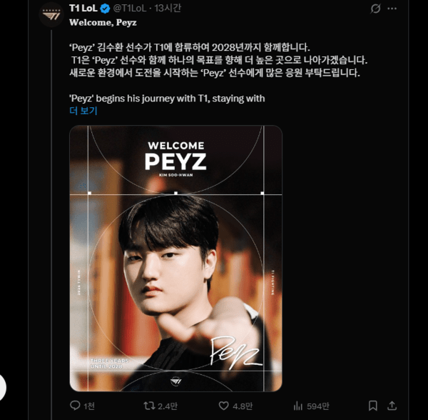 당초 T1의 중심 페이커 이상혁도 이번 시즌을 끝으로 계약 종료가 예정되어 있었다. 하지만 T1은 지난 7월, 빠르게 페이커와 4년 재계약을 체결했고, 연말 스토브리그에서는 다른 라인 선수들에 집중할 수 있었다. 페이커는 T1과 2029년까지 동행할 예정이다.
