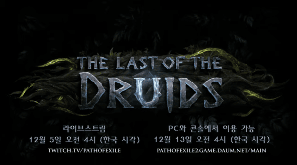오는 12월 13일, 진행되는 '패스 오브 엑자일2' 0.4.0 업데이트 명은 '최후의 드루이드'다. 티저 영상에서는 달빛 아래 서있는 드루이드의 그림자가 늑대로 변신하는 모습이 담겼다. 이로써 차기 시즌에서는 신규 클래스와 전직들이 등장할 것으로 예고됐다.