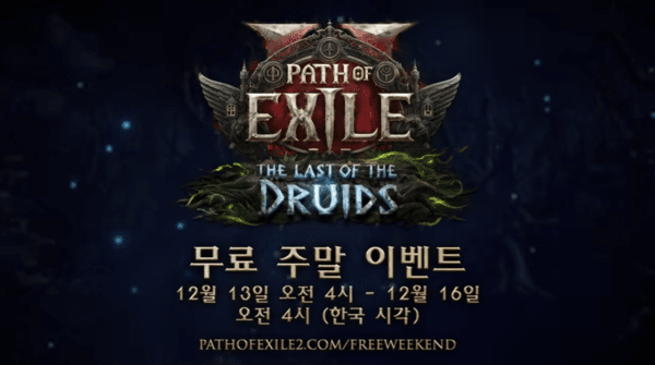 한편, '패스 오브 엑자일2' 무료 플레이 이벤트는 12월 13일부터 16일까지 4일간 진행된다. 이 기간에는 얼리액세스 키가 없는 누구라도 게임 플레이에 접속할 수 있으며, 기존 유저들은 무료 기간 외에도 제한 없이 플레이가 가능하다.