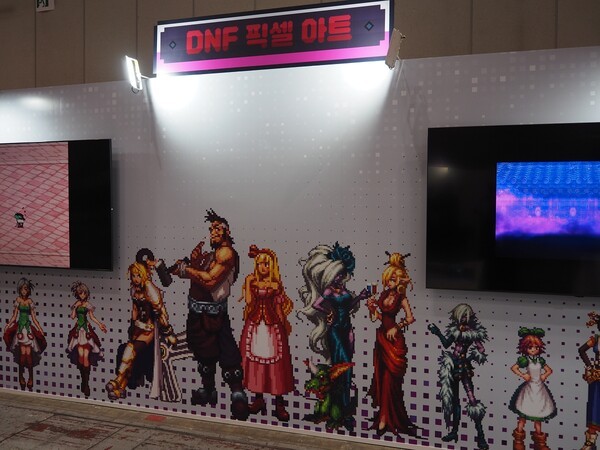 DNF 픽셀 아트 존에서는 던파의 캐릭터와 세계가 픽셀 스타일로 재탄생해 전시됐고, 레트로 감성이 강조된 아트워크는 관람객들의 사진 촬영으로 북적였다.
