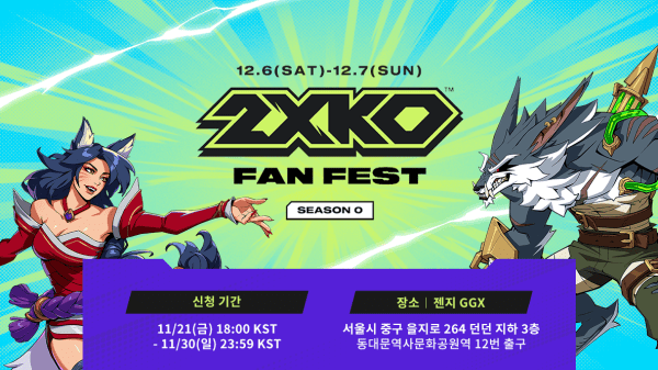 이번 이벤트는 오전 11시부터 오후 6시까지 1부, 2부로 나눠서 운영되며 '2XKO 시즌 0 팬페스트' 참가를 원하는 팬들은 11월 30일(일) 자정(23:59)까지 참가 신청 사이트에 정보를 입력할 수 있다.